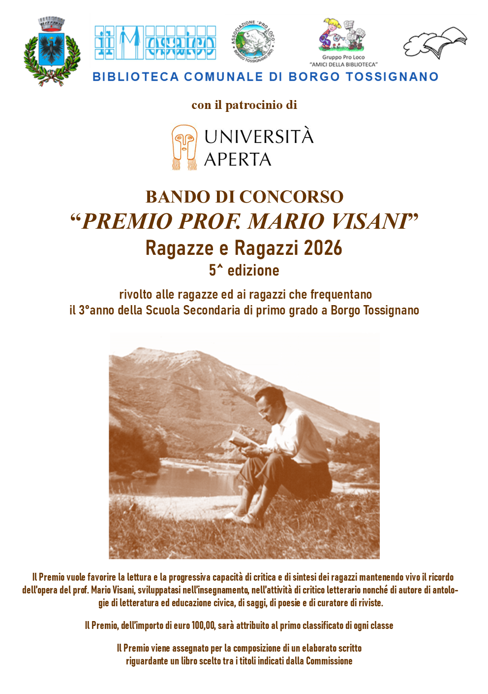 L'Amministrazione comunale in collaborazione cona la Biblioteca di Borgo Tossignano, Il Mosaico, l'Associazione Pro Loco di Borgo Tossignano, il Gruppo Pro Loco "Amici della Biblioteca" con il patrocinio di Università Aperta ha pubblicato il bando