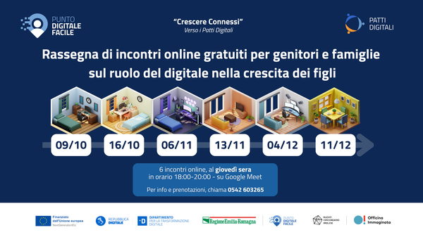 Ieri, giovedì 9 ottobre, si è svolto, con grande partecipazione di pubblico, il primo di sei incontri online della rassegna “Crescere connessi – Verso i Patti Digitali”, un’iniziativa promossa dal Nuovo Circondario Imolese insieme ai Comuni del territorio e all’Azienda USL di Imola, nell’ambito del progetto Digitale Facile.