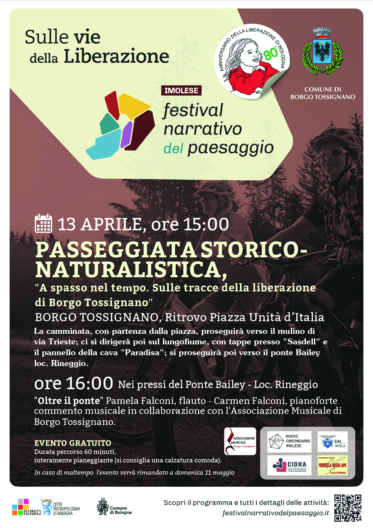 Domenica 13 aprile 2025 alle ore 15 , ritrovo in piazza dell'Unità d'Italia a Borgo Tossignano, unisciti a noi per una camminata tra storia e natura "A spasso nel tempo. Sulle tracce della liberazione di Borgo Tossignano".