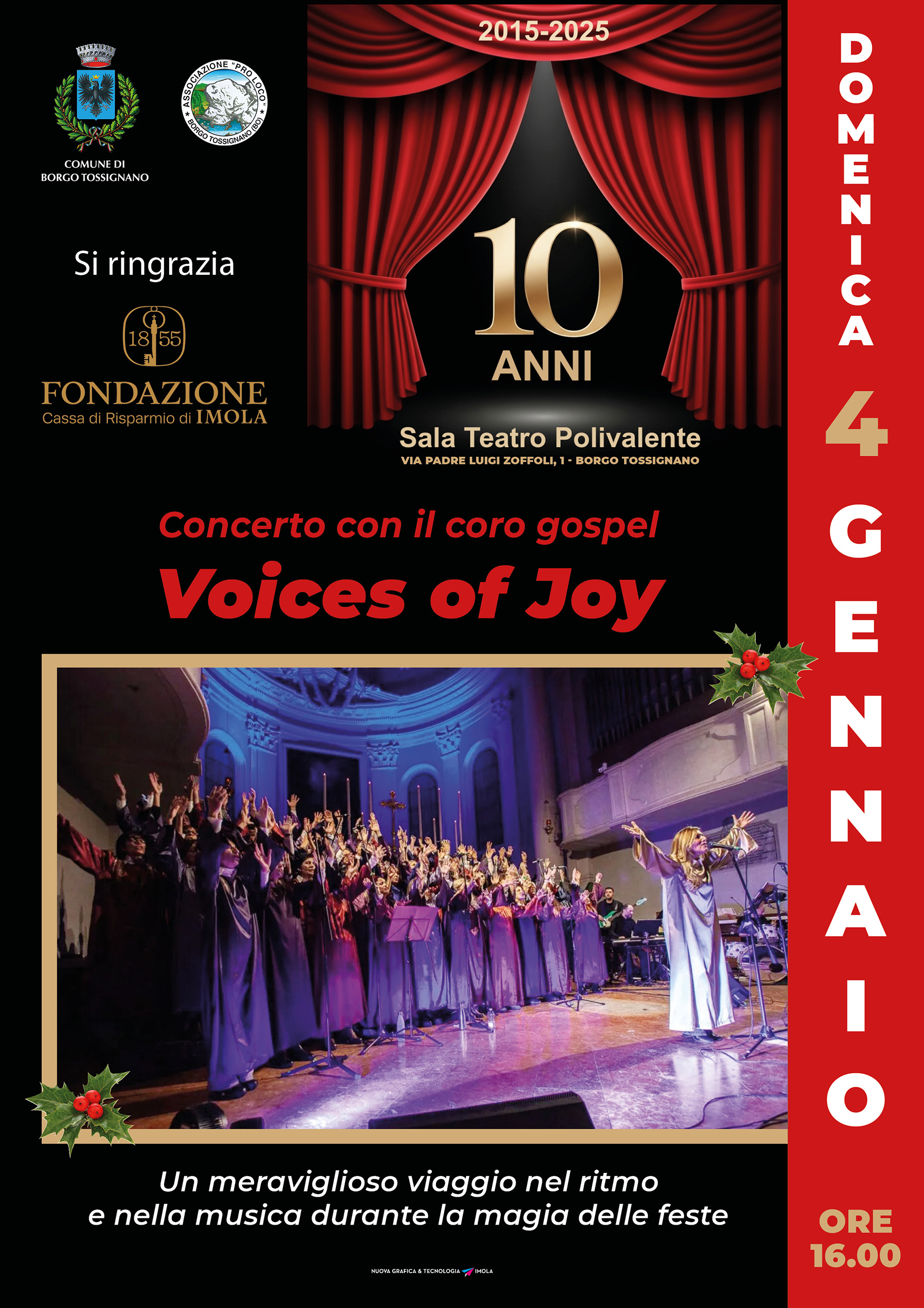 A cura dell'Associazione Pro Loco di Borgo Tossignano e dell'Amministrazione comunale, domenica 4 gennaio 2026 alle ore 16 presso la Sala Teatro Polivalente di Borgo Tossignano, si svolgerà